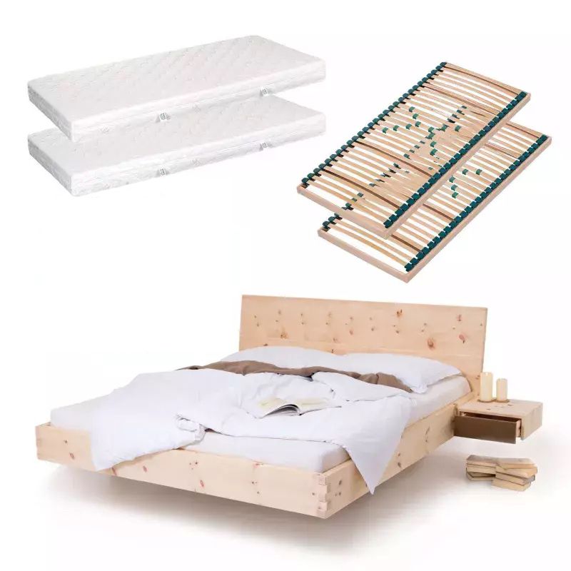 – Floating, metal-free Swiss stone pine bed, model: Die kleine Zirbe 1.3 (other models also available)